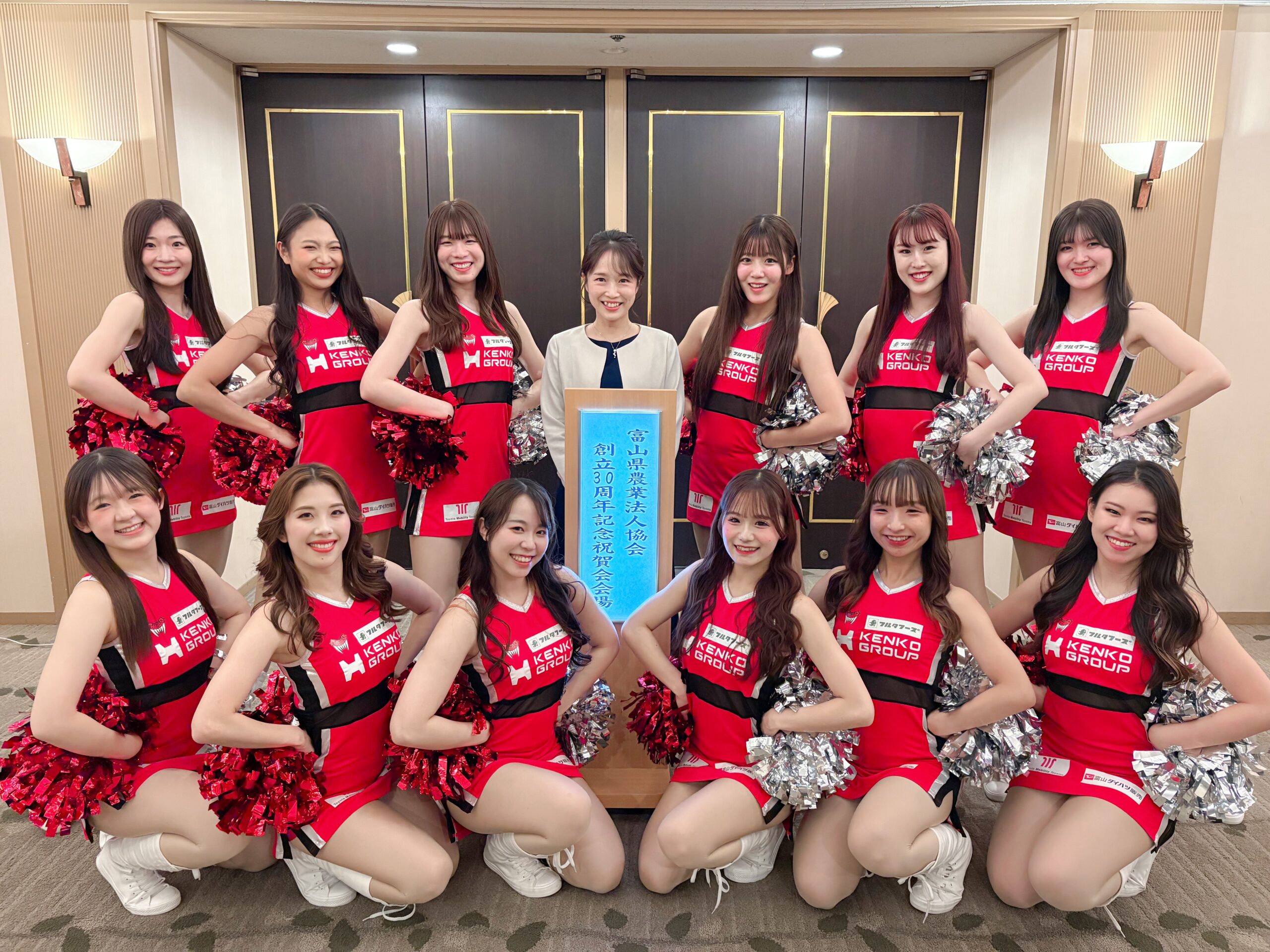 祝賀会では、プロバスケットボールチーム・富山グラウジーズの専属ダンスチーム「G.O.W」から「G.O.W ROUGE」の皆さまが登場。迫力あるパフォーマンスと笑顔で会場を盛り上げ、華やかな雰囲気に包まれました。
